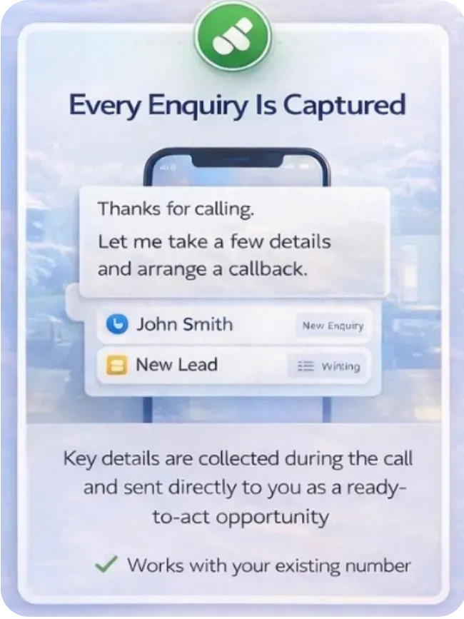 Customers often call outside working hours Without a system, those enquiries disappear overnight