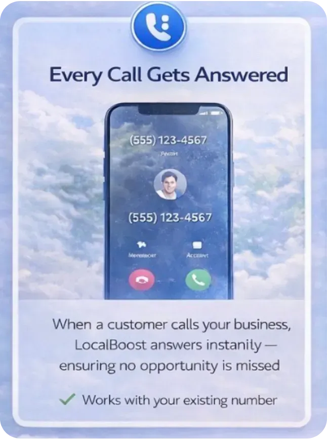 Every missed call is a lost customer. LocalBoost makes sure that never happens again