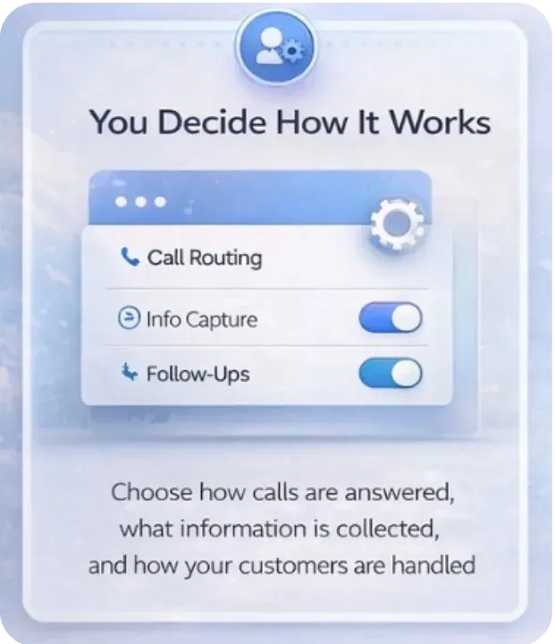 LocalBoost works with your business, not instead of it. You decide how calls are handled, what gets captured, and how follow-ups happen.